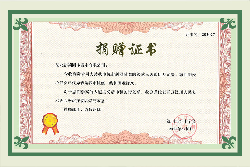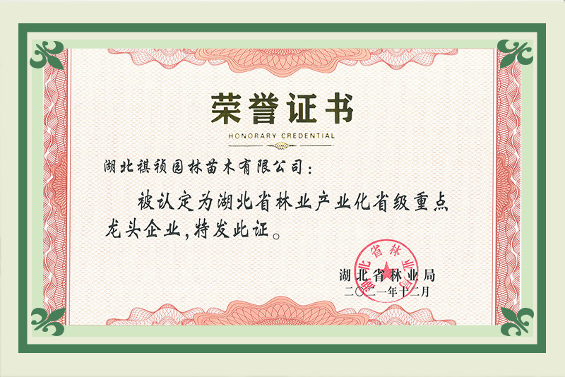 湖北祺禎園林苗木有限公司是一家專門致力于發(fā)展現(xiàn)代林業(yè)、苗圃花卉、旅游觀光、休閑娛樂、園林市政環(huán)保工程建設(shè)于一體的湖北省林業(yè)產(chǎn)業(yè)化省級龍頭企業(yè),公司具備城市園林綠化、建筑工程施工總承包、市政公用工程施工總承包、機電工程施工總承包、城市及道路照明工程專業(yè)承包、環(huán)保工程專業(yè)承包、施工勞務(wù)資質(zhì)不分等級等多項建筑業(yè)企業(yè)資質(zhì),先后獲得湖北省林業(yè)產(chǎn)業(yè)化省級重點龍頭企業(yè)、AAA級信用等級企業(yè)、孝感市“守合同重信用榮譽證書”、“五一勞動獎”等榮譽及質(zhì)量管理、環(huán)境管理、職業(yè)健康安全管理三大體系認證。